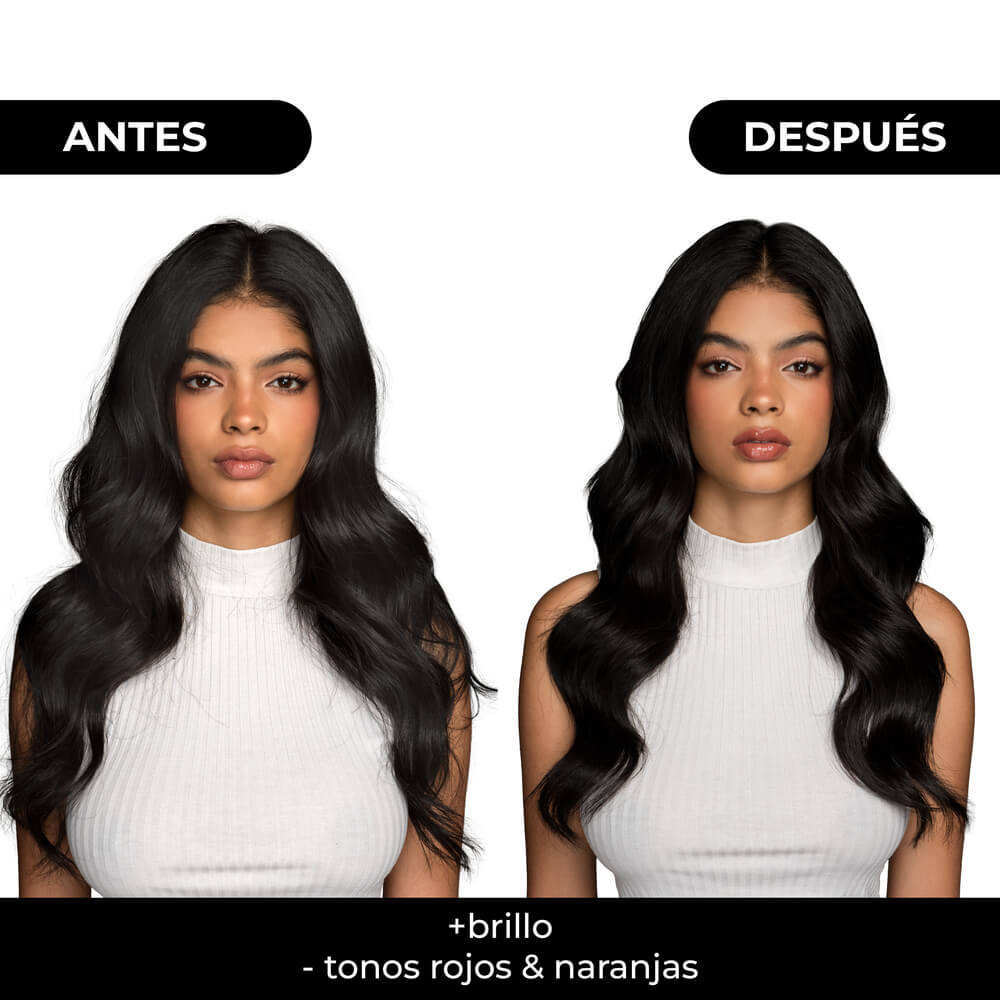 La línea Negro está diseñada para matizar los tonos de tintura negros y castaños muy oscuros.