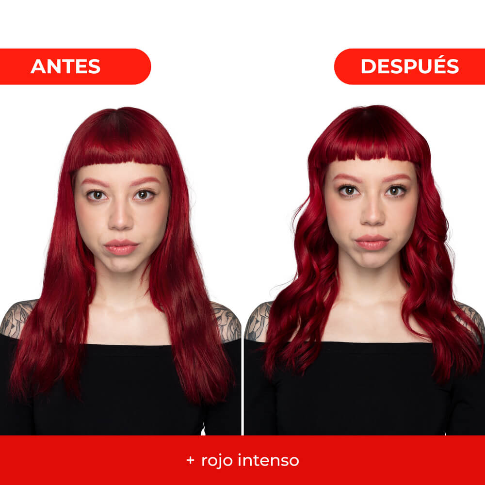 Reafirma, matiza el tono y reflejo rojo de tu melena, extendiendo el tiempo de tintura.