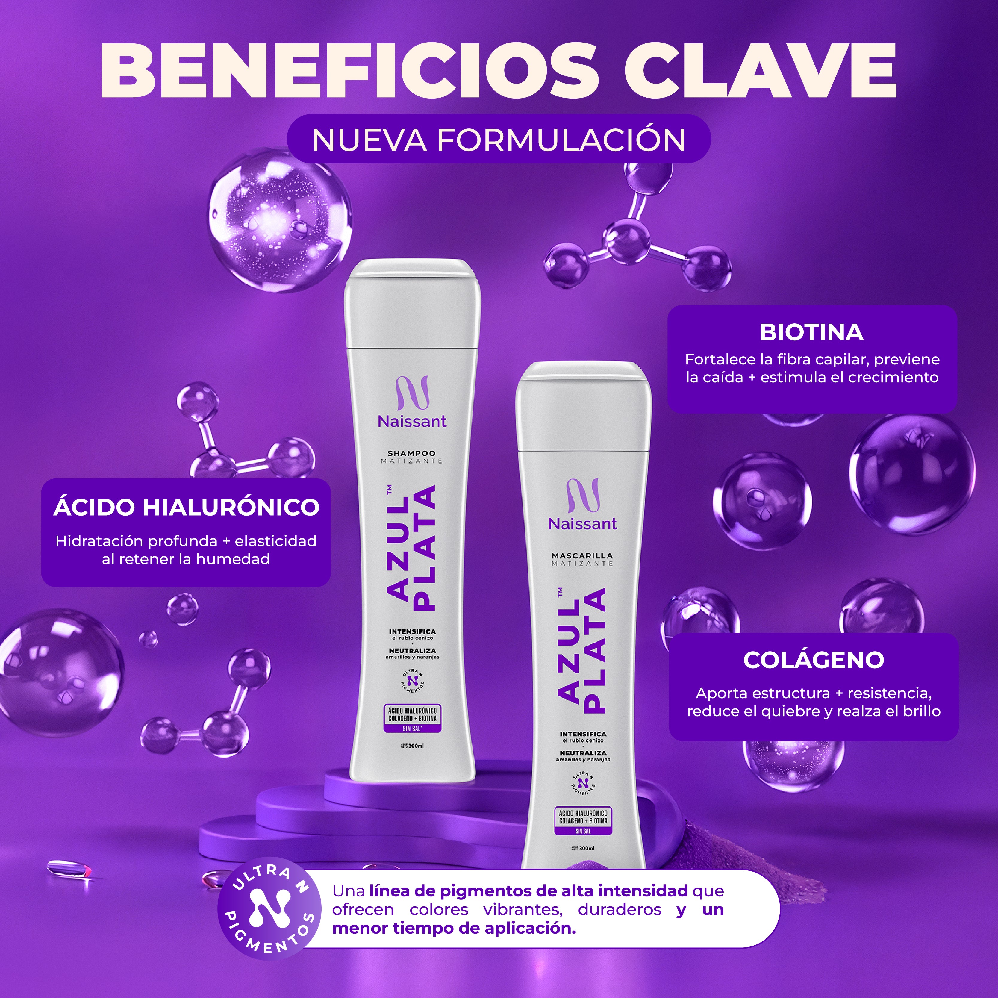 Ácido Hialurónico: Proporciona hidratación profunda, combate el frizz y actúa como estabilizador de la estructura de la melena, mejorando la salud y apariencia general.